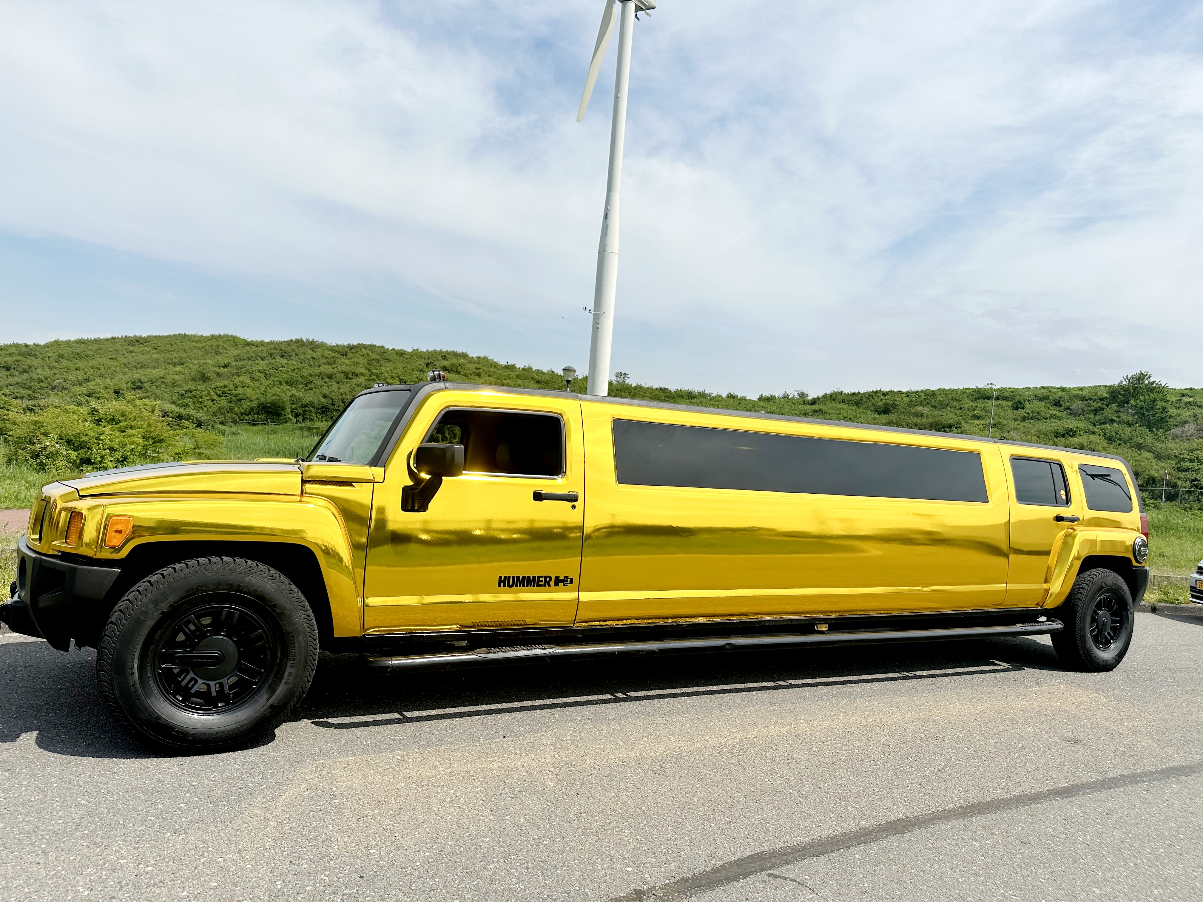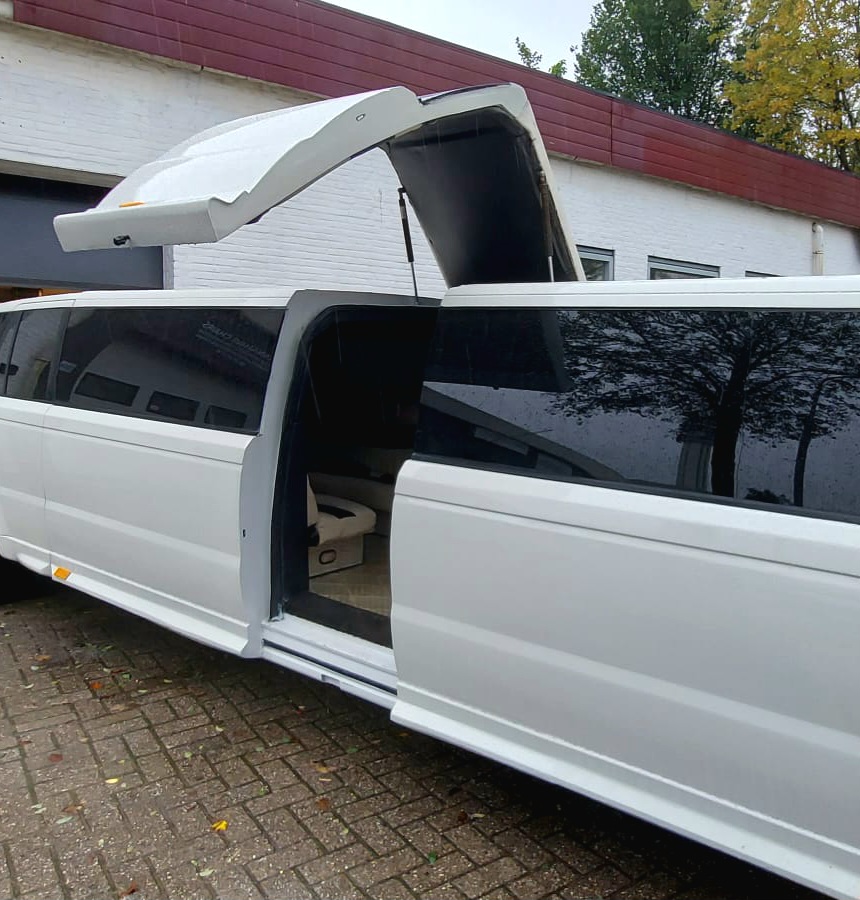 Een opvallende limousine met een uniek design.